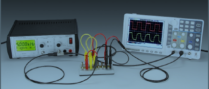 Step response: A square wave signal is used as input and the output is studied on an oscilloscope.